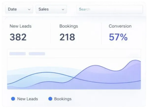 Simple reporting helps you track leads, bookings, and conversion flow.
