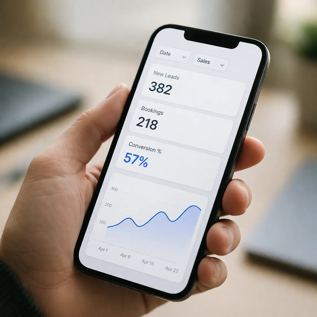 Dashboards that surface leads, bookings, and conversion flow — updated in real time as your business runs.